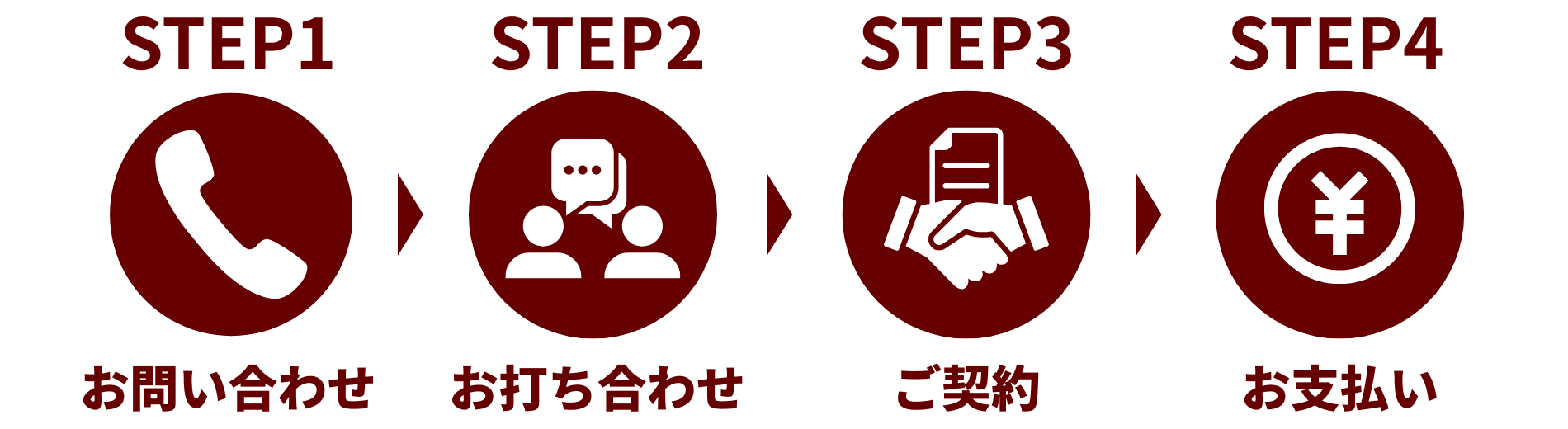 大まかな流れは下記の通りです。詳細はお問い合わせください。
